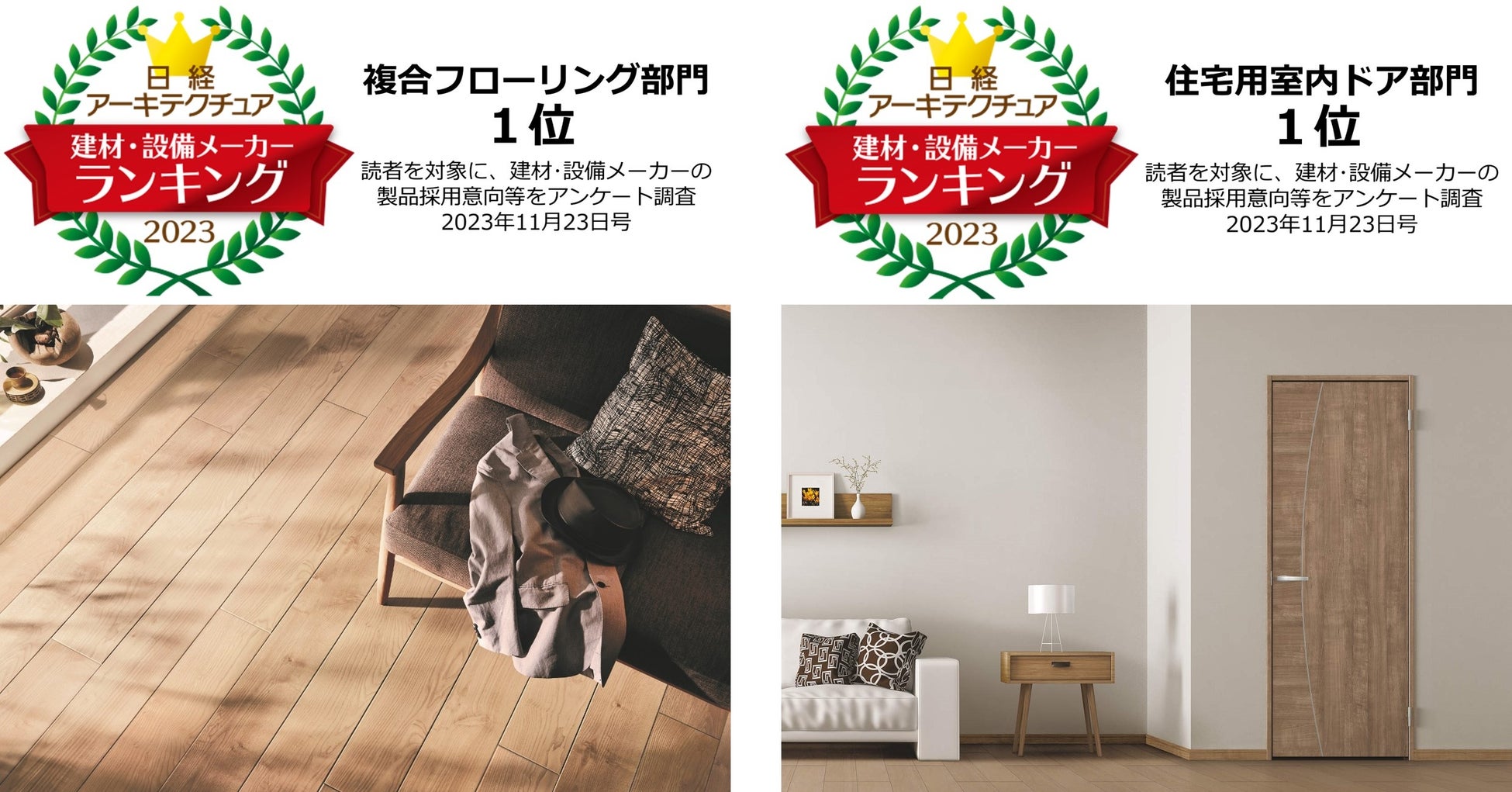 日経アーキテクチュア「採用したい建材・設備メーカーランキング2023」 『複合フローリング部門』・『住宅用室内ドア部門』で第1位を獲得