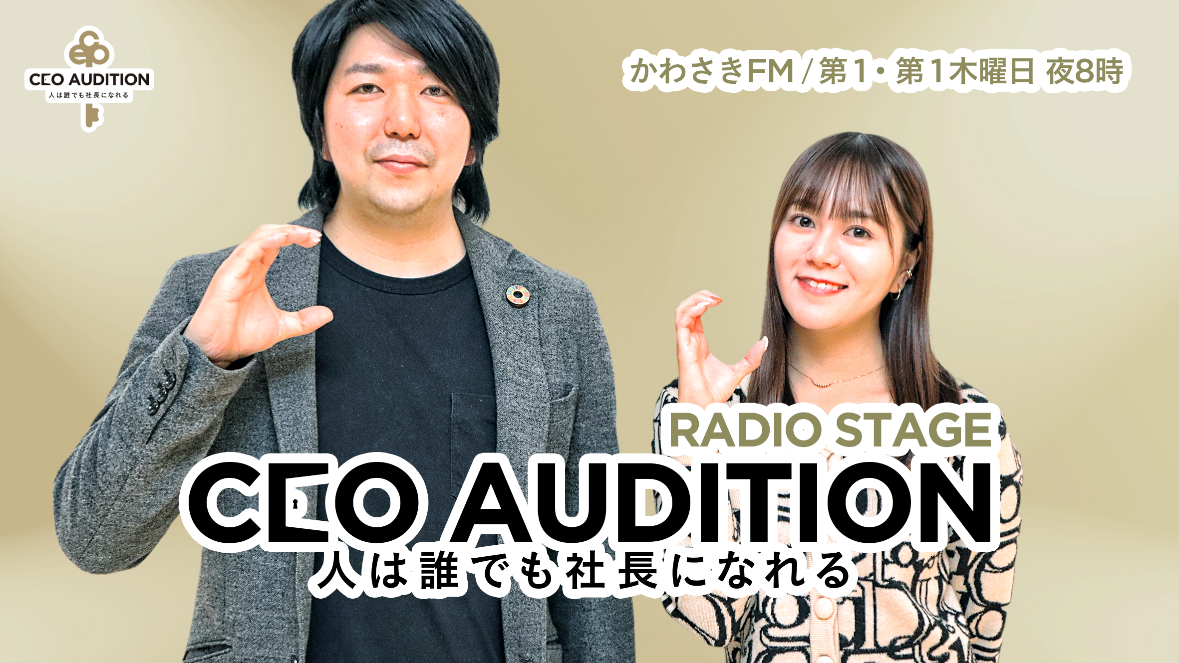 一般社団法人日本CEO協会(所在地:京都府京都市、代表理事:田中 千穂)が中心となり発足した社長輩出プロジェクト「CEOオーディション」は、かわさきFMにてCEOオーディションのラジオ番組「CEOオーディション Radio Stage」を2022年11月3日(木・祝)からスタートいたします。毎月第1・第3木曜日20:00〜、番組尺29分の放送でお送りします。