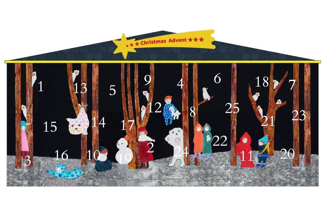 おしゃれなイラストのアドベントカレンダーマグカップです。今日は何が出てくるかな?とワクワクしながらクリスマスを楽しみましょう!