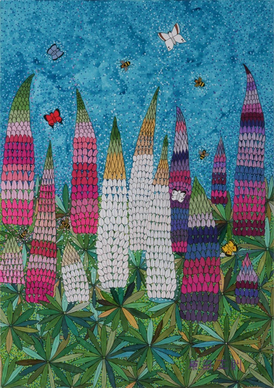 障がいの垣根を越えた交流を目指す「かっこうの森」において、世界で活躍するアーティストの作品に身近に触れることで、様々な人々とのコミュニケーションを深めることを目的としたイベントを開催します。同施設と飛騨産業は、誰もが個性と才能を生かして活躍できる共生社会を目指す上で、アートの力は大きいと考え本イベントに取り組むこととなりました。このような取り組みに、ニューヨークを拠点に活動し鮮やかな色彩と精緻な描線による絵画や大規模なパブリックアートプロジェクトも手がける岐阜県高山市出身の現代美術家・松山智一氏も賛同。期間中、2021年から2022年に制作された松山氏の版画作品3点を特別に展示し、原田正則氏による「ルピナス」をはじめ、飛騨慈光会施設利用者の作品と共に鑑賞いただけます。