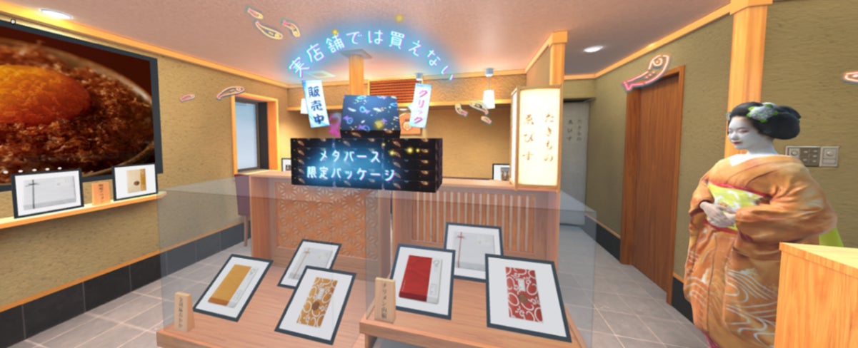 三十年以上に渡り、伝統の味を継承するチリメン山椒のお店「たきものゑびす」をメタバース空間に完全再現。来店が難しい遠方の方でもメタバース店舗限定のオリジナルパッケージや、通常商品を手軽にご購入いただけるようになっています。メタバース空間ならではのデザインが施されており、実店舗では感じられない独自の雰囲気をお楽しみいただけます。