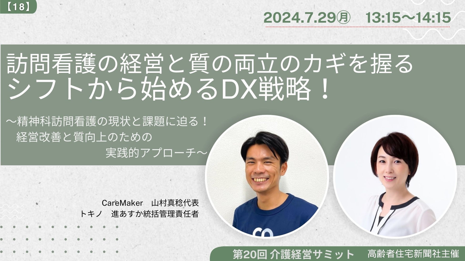 【訪問看護・介護DX】CareMaker代表 山村が「 第20回 介護経営サミット 」に登壇。訪問看護の経営と質の両立のカギを握るシフトから始めるDX戦略について解説