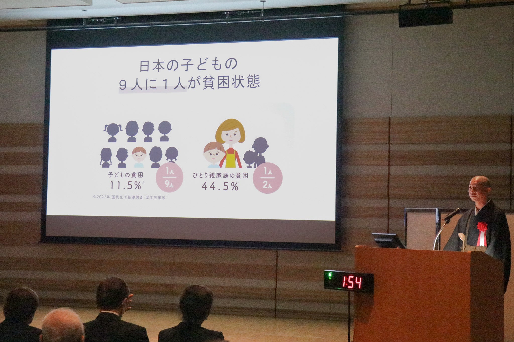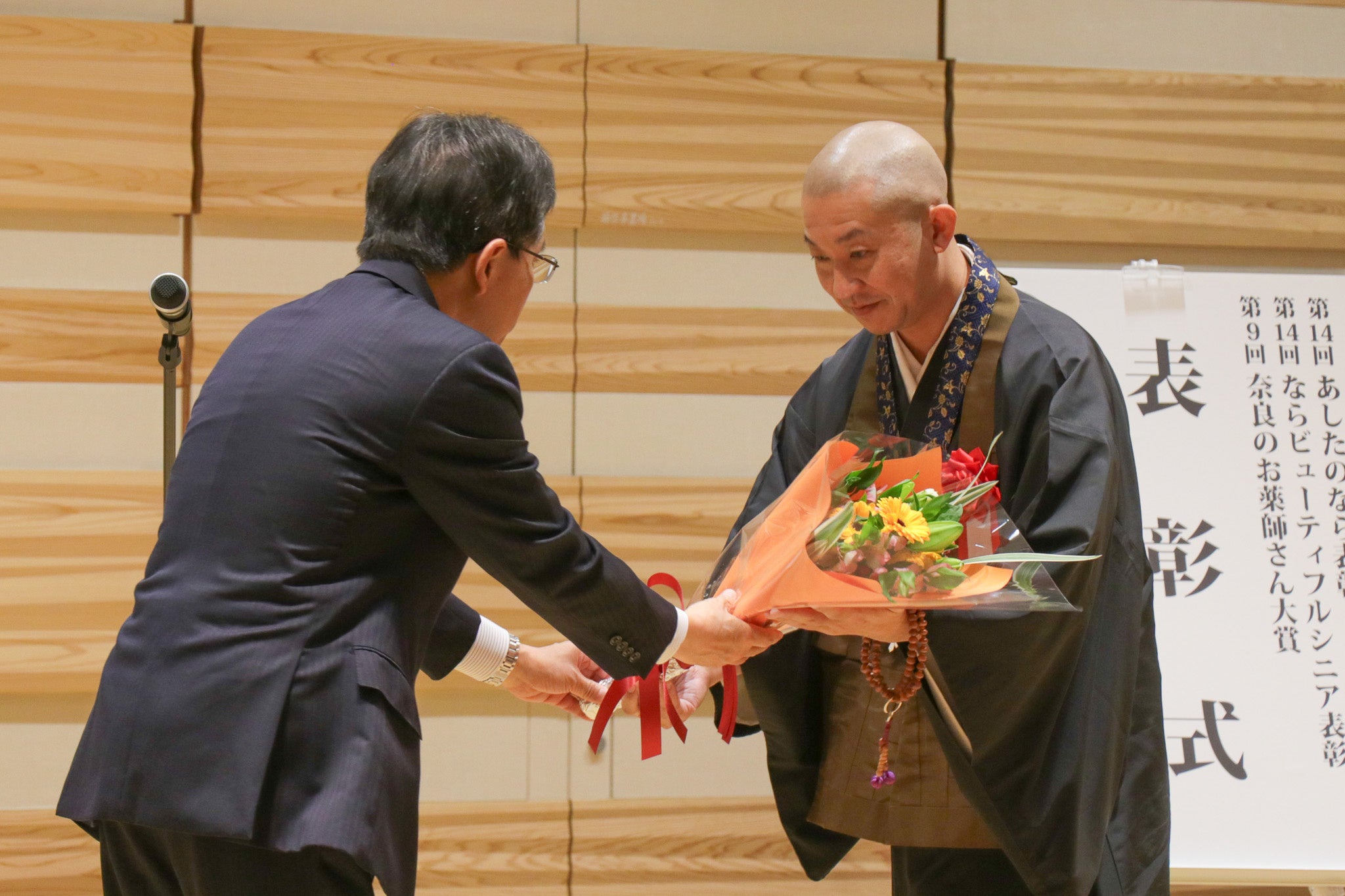 表彰式では代表理事の松島靖朗がおてらおやつクラブの目的や活動、子どもの貧困の現状についてスピーチし、「たよってうれしい、たよられてうれしい。奈良県から全国へ、そして未来を支える子どもたちに、たくさんの嬉しいを広げていきましょう」とお伝えしました。