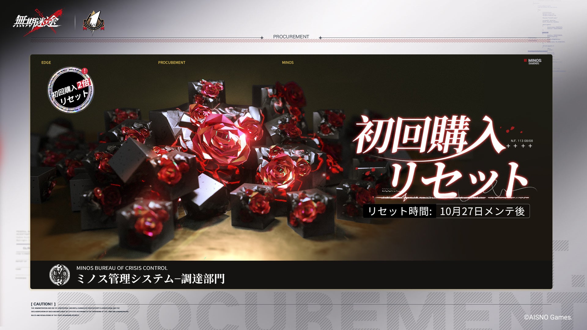 1.10月27日メンテナンス後、「調達部門-クリスタル」では、すべてのルミノクリスタルが初回購入2倍の状態にリセットされ、初回購入2倍キャンペーンを再びご利用いただけます。