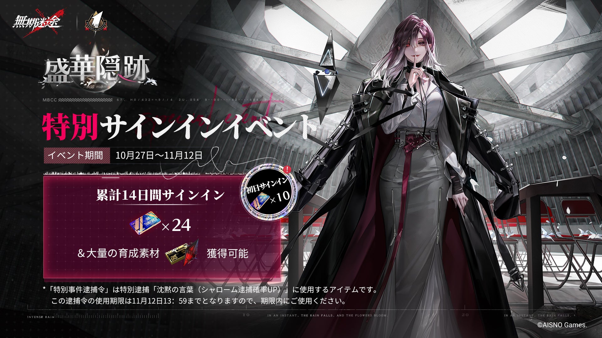 ※「特別事件逮捕令」は今回のイベント限定の特別逮捕「沈黙の言葉」でのみ使用できます。本アイテムは11月12日13:59の時点で使用できなくなりますので、必ず期間中にご利用ください。