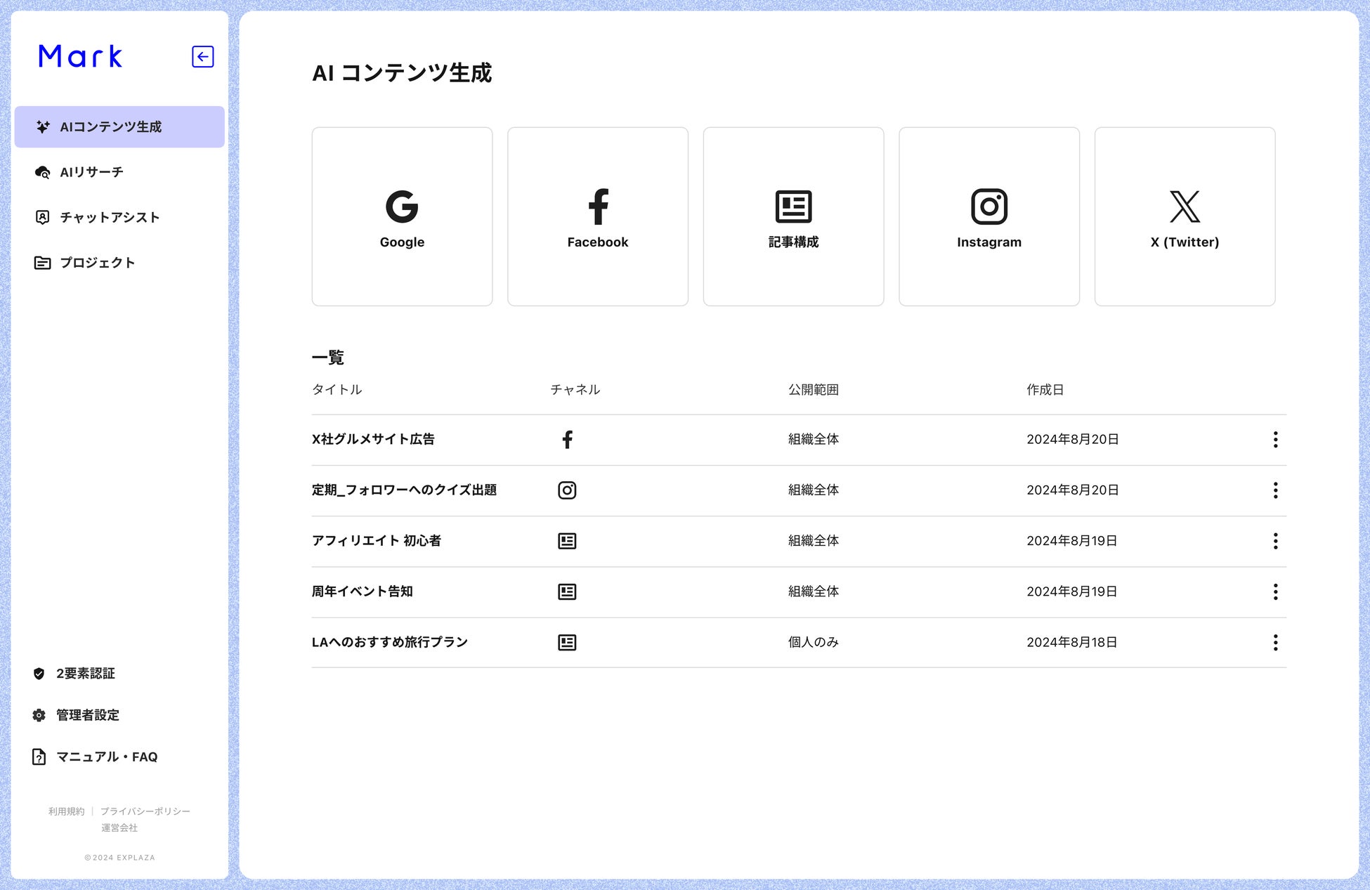 株式会社エクスプラザ、顧客に実際に届けられる品質のマーケティングコンテンツを生成する AIサービス「Mark」の先行申込みを開始