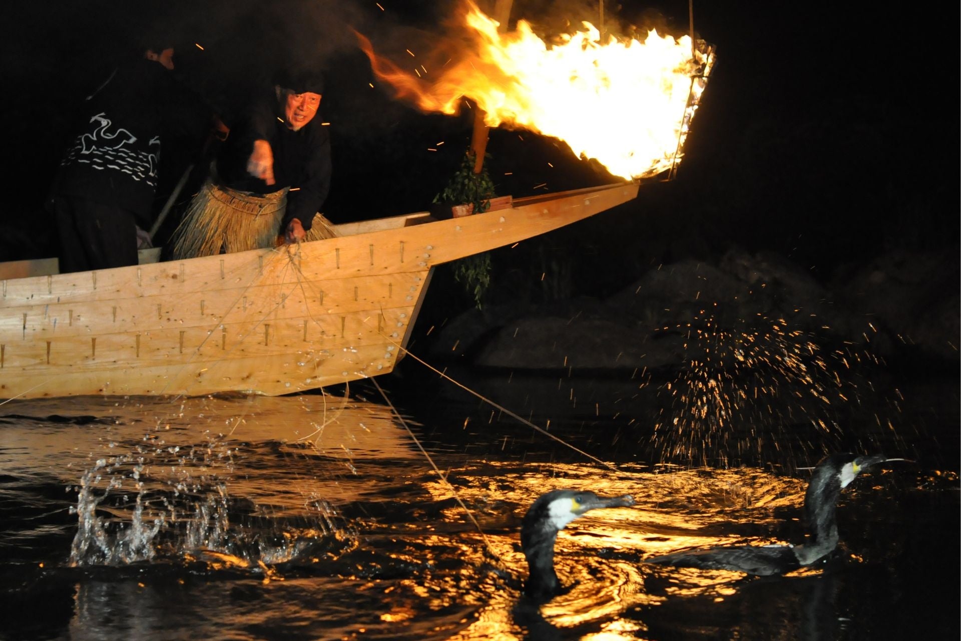 鵜飼の歴史はきわめて古く、奈良時代行われていた漁法だと考えられています。その伝統的な漁法を1000年以上守り続け、国の重要無形民俗文化財に指定されています。静寂な暗闇の中行われる幻想的な世界観をぜひお楽しみください。