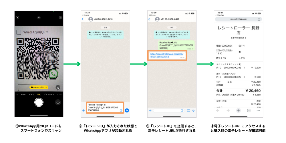 今回の連携により、消費者はお買い物の決済後にQRコードを読み込むか、NFCをタッチするだけで、メッセンジャーアプリWhatsApp上で直接電子レシートを受け取ることが可能になります。