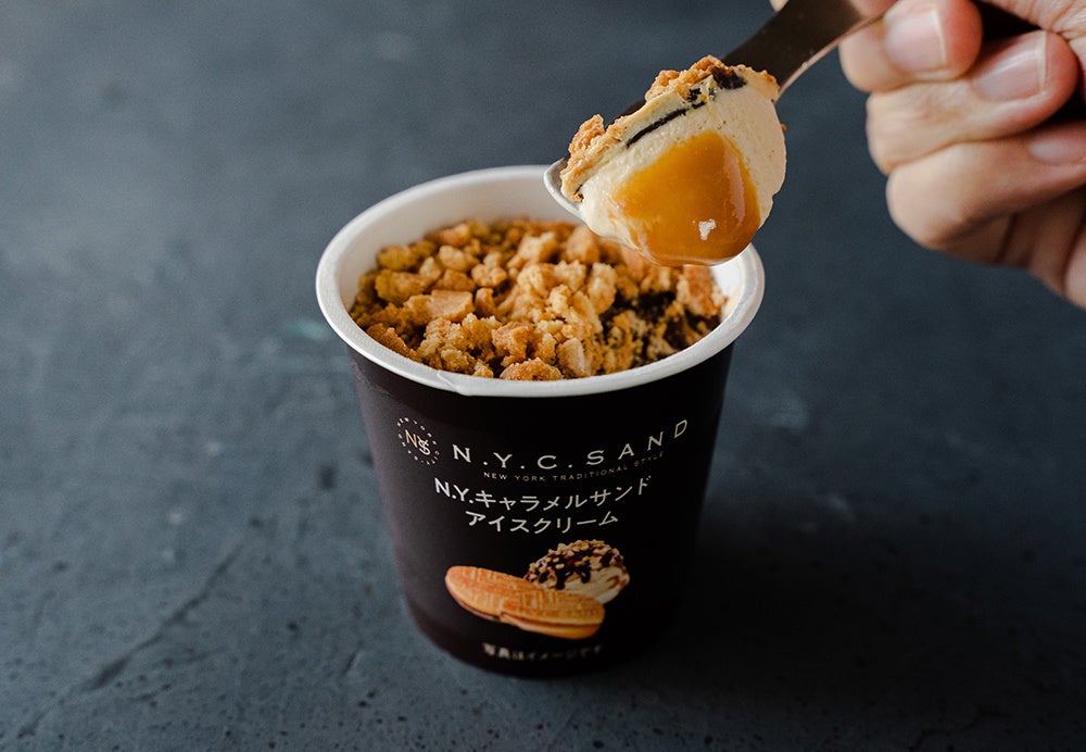 - N.Y.C.SANDの看板商品「N.Y.キャラメルサンド」をカップアイスで表現した「N.Y.キャラメルサンドアイスクリーム」