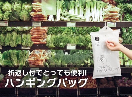 “レジでの袋詰め作業が遅い” “袋がなかなか開かない” “従業員による袋の口開き作業が無駄”といった、お客様もスタッフも抱える袋詰めのストレスを、トパックハンギングバッグがまとめて解消。袋詰め作業を効率化するポイントは、「袋の口を開けた状態で収納」。片手でサッと取り出せる「折り返し」付きなので、従業員の作業時間が大幅に軽減されますし、お客様をお待たせする時間も大幅に短縮できます。