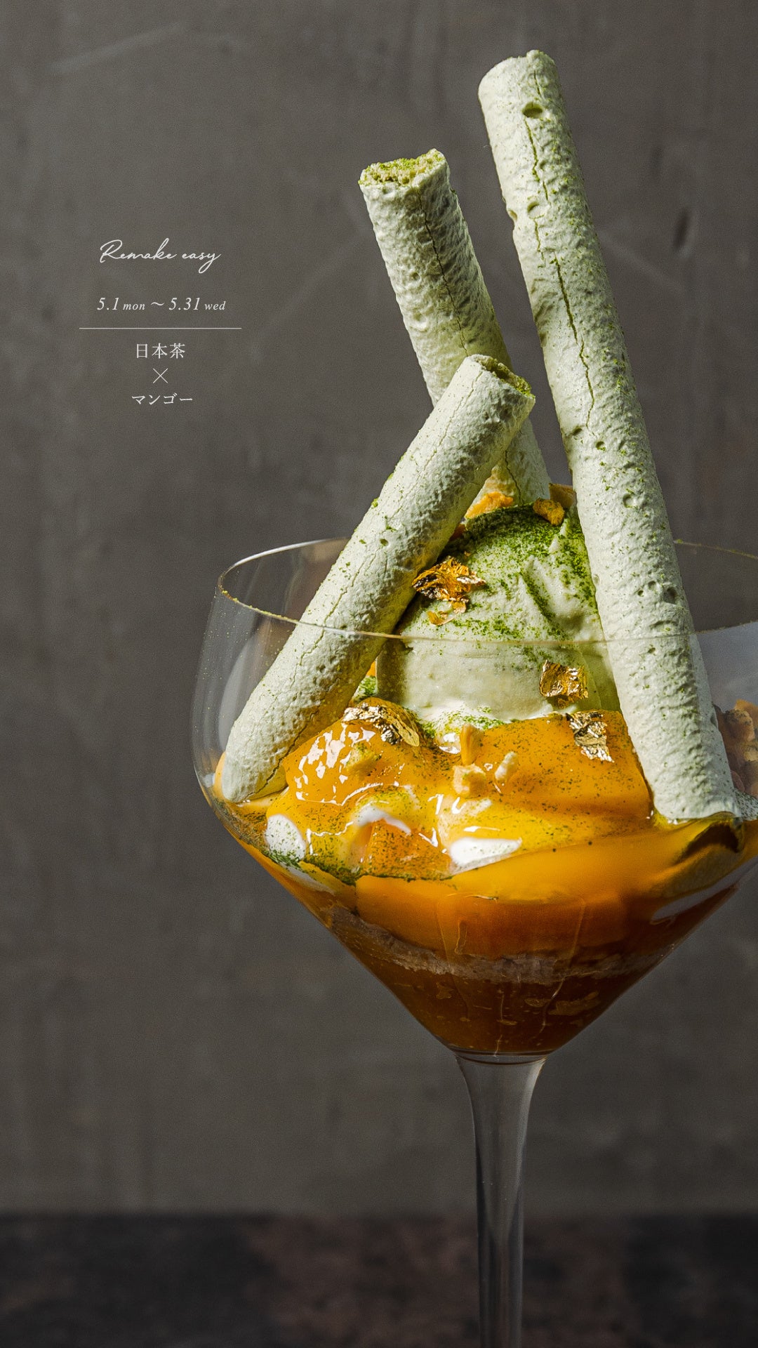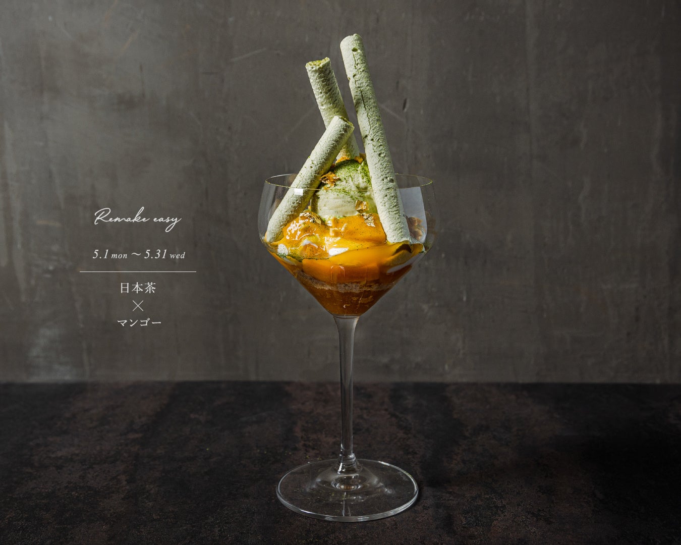 会員制パフェバー「Remake easy」季節限定パフェ「日本茶とマンゴーのティラミスパフェ」を5月限定で販売開始。