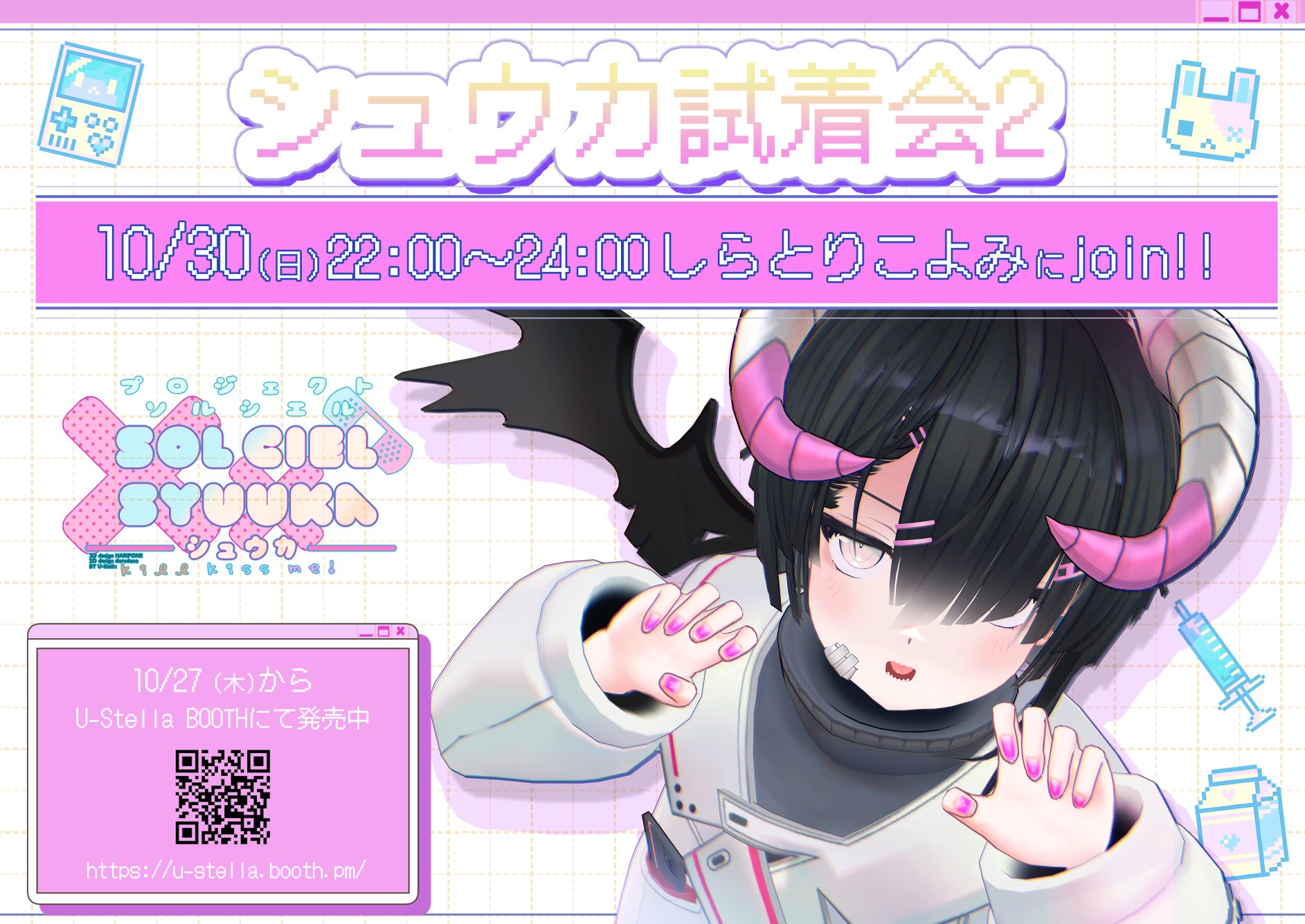 U-Stella株式会社(東京都目黒区、代表取締役:原田アロハ、以下ユーステラ)は、VRChatにて、10月30日(日)22:00より新作3Dモデル、ソルシエル『シュウカ』(SYUUKA)の 第2回試着会を開催いたします。