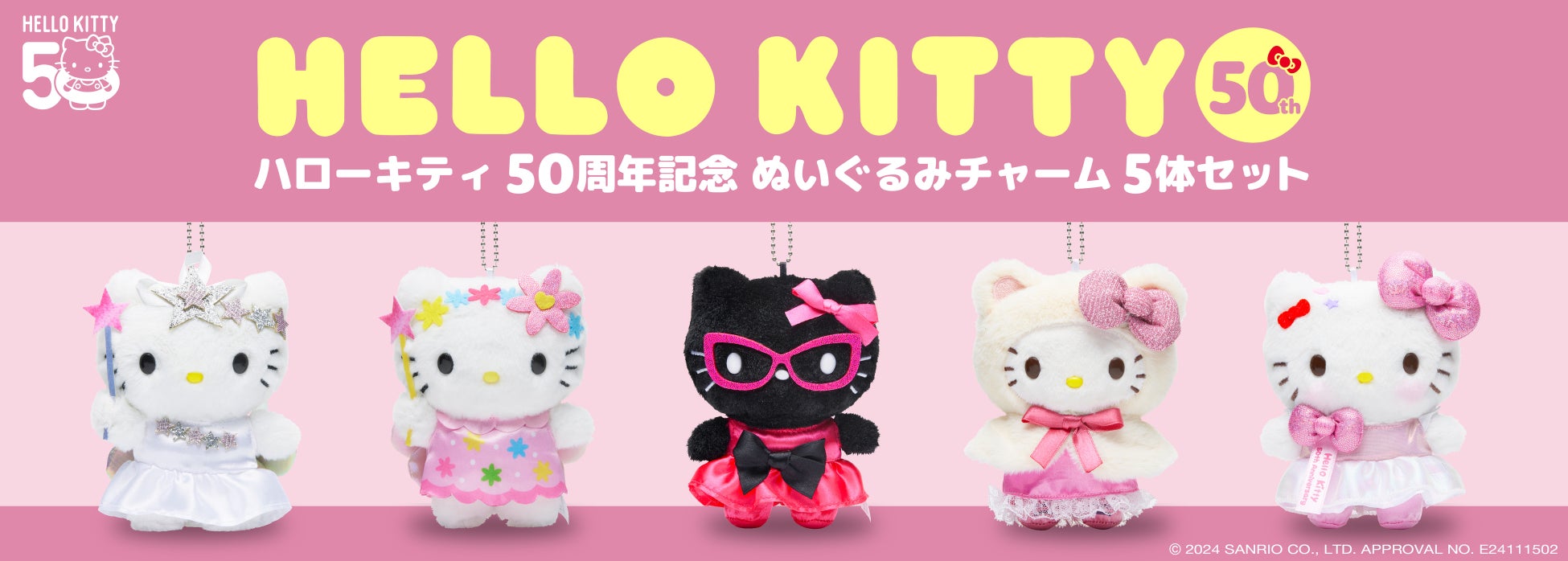 ハローキティの誕生50周年を記念した特別なぬいぐるみチャーム5体セットの予約受付を、11月29日(金)14時よりセブンネットショッピング限定で開始いたします!