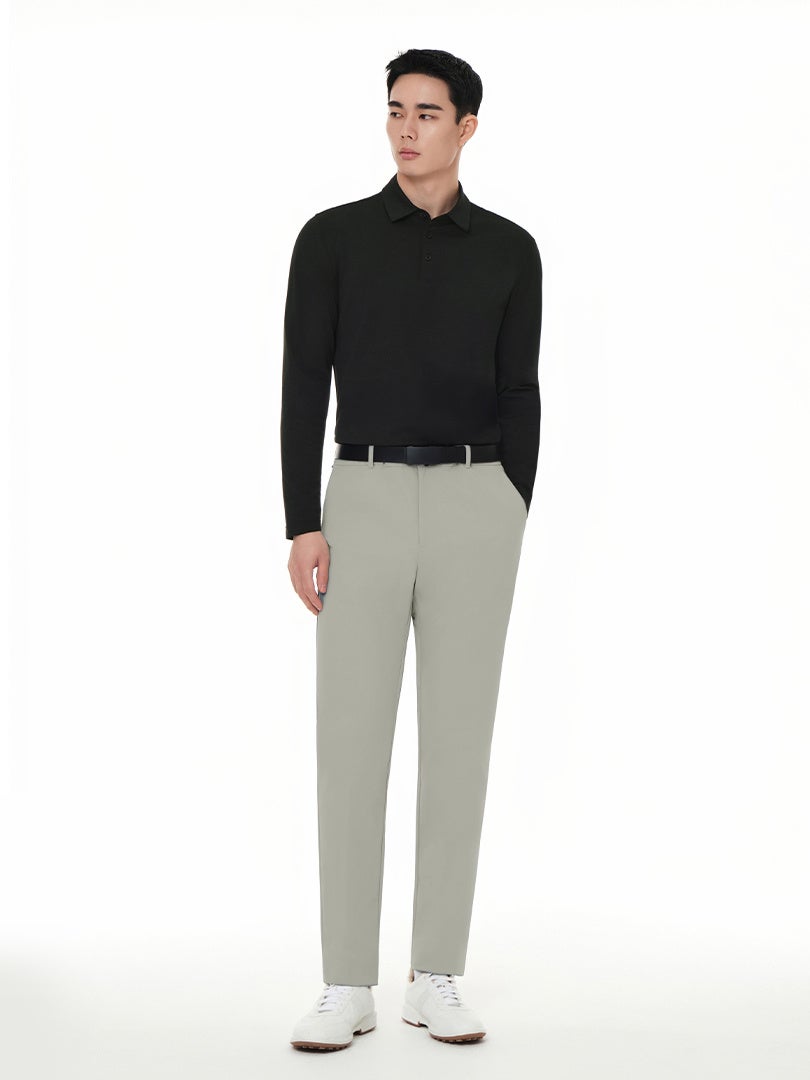 まるで肌から浮いているような新感覚をもたらす、自社開発素材100%のポロシャツ。一般的なポロシャツとは異なり、身体のラインを拾わずにすっきりと見せながら、お腹まわりをカバーし肩幅を広く見せるデザインです。シワになりにくく、出勤前のアイロン要らずでお手入れも簡単です。