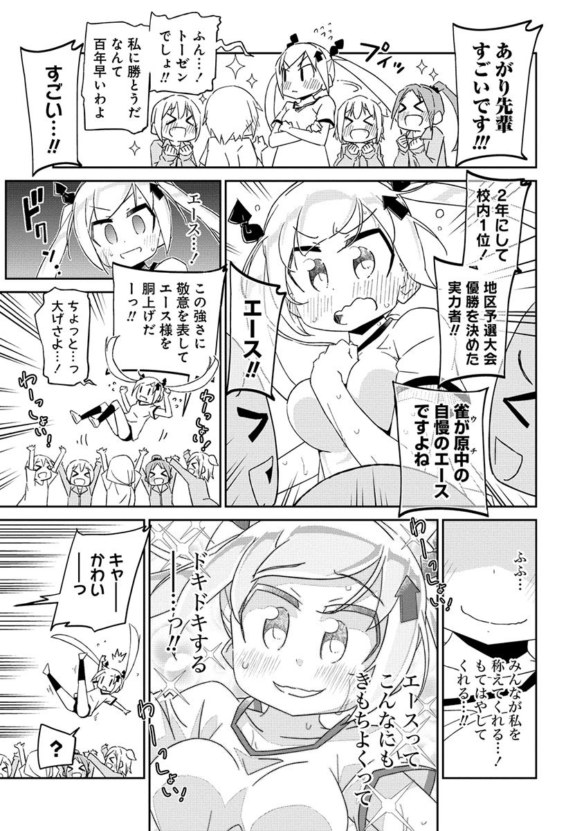 全国級の強者・二重丸くるりとの練習試合。月ノ輪紅真深との愛憎渦巻く激戦を制し、雀が原は次なるステージ・都大会へ!