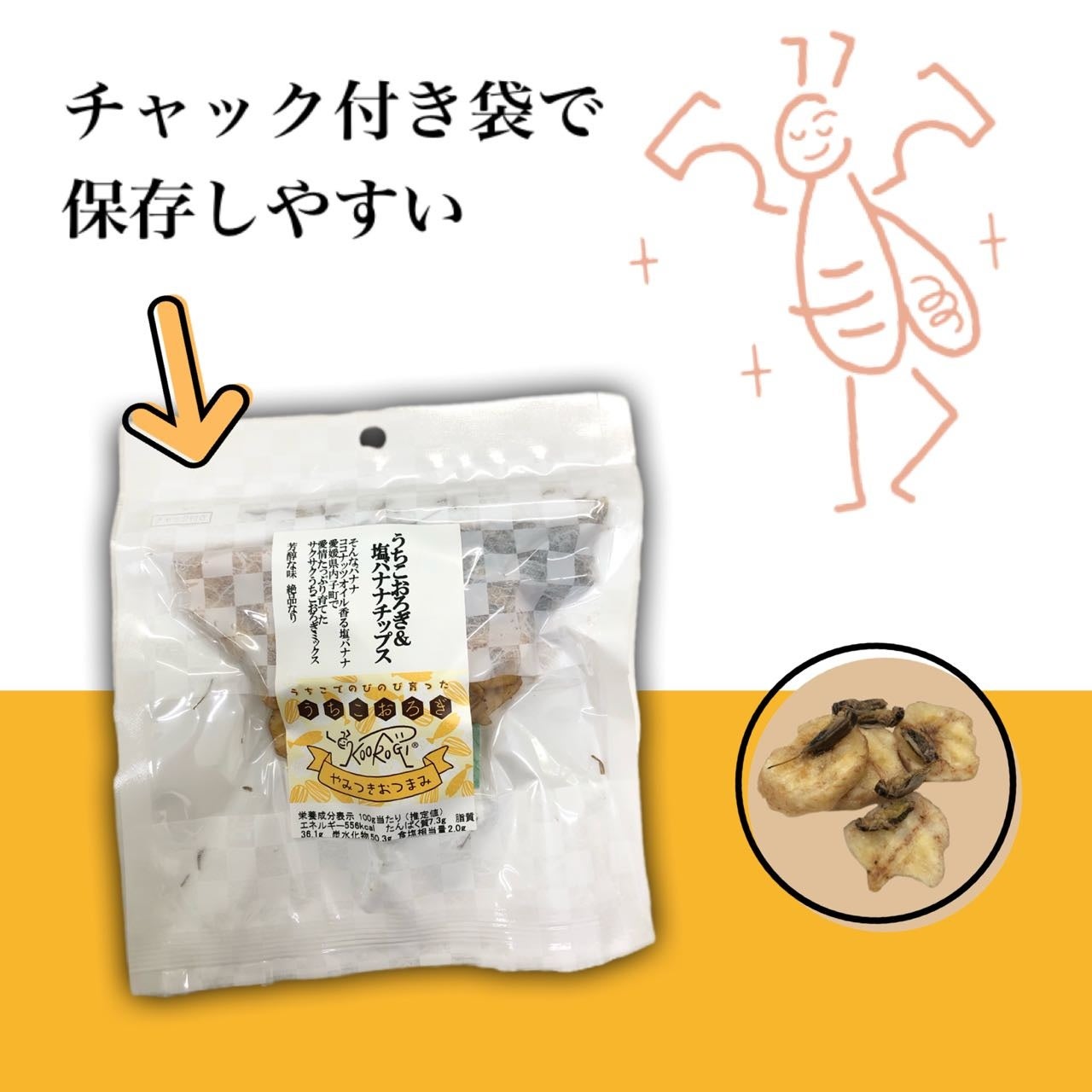 塩味とココナッツオイルの美味しさと香りがアクセントの塩バナナチップはザク切りにこだわりました。