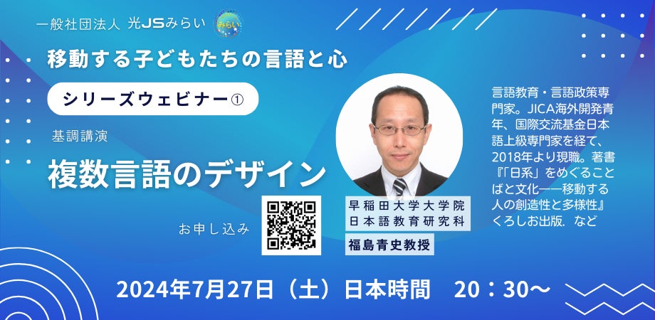 多文化共生社会推進・日本語学習支援等の事業を手掛ける㈳光JSみらいは、日本語話者の意識啓発事業の一環として、以下の通りシリーズウェビナ―を開催します。