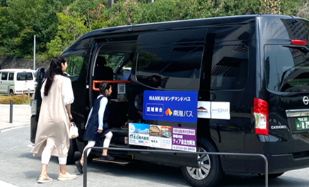 時刻表や決まった経路がない予約型の乗合バスで、「泉北ぷらっと」を含め81か所の停留所で乗り降りが可能です。詳細は、当サービスの公式サイト(https://nankai-ondemandbus.com/)をご覧ください。