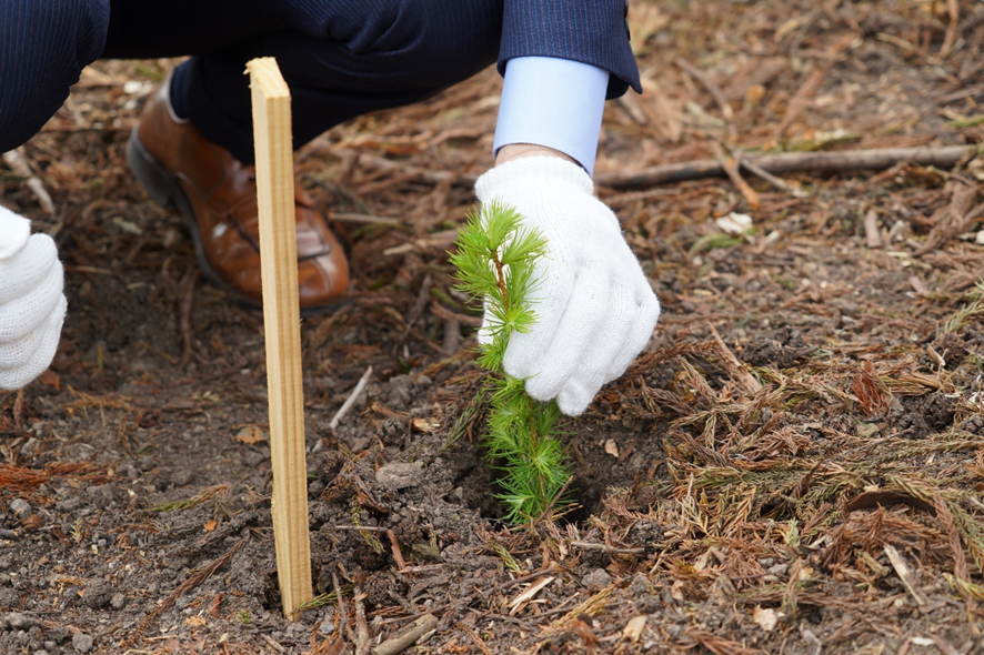 当社は会津地域の13市町村を中心に官民一体となって、森林資源の活用を推進し社会課題を解決していくために設立されました。森林資源を活かした熱供給事業や担い手不足の苗木生産まで幅広く取り組んでおります。また、本日のような緑化事業も各民間事業者の協力を得て各地で実施しております。
