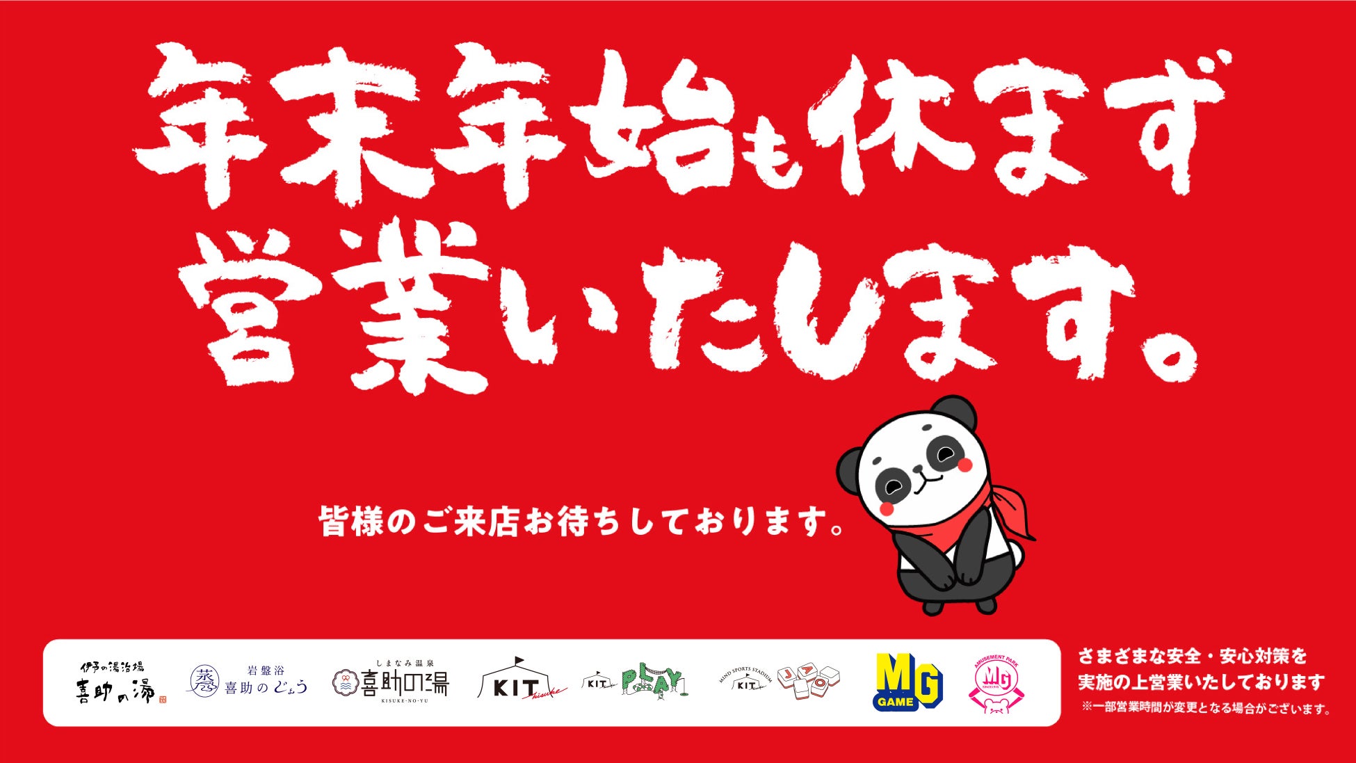 キスケ株式会社が運営するエンターテイメント施設は年末年始休まず全店営業いたします。