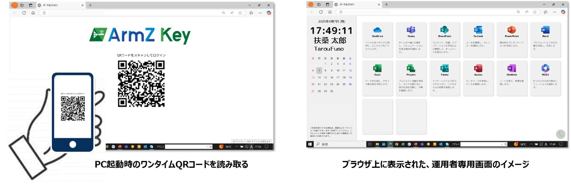 ゼロトラストセキュリティ対応認証サービス 『ArmZ Key』 「ArmZ Key」は、Webサービス利用時の安全性とユーザビリティを向上させるためのクラウドサービスです。ゼロトラストセキュリティ・ゼロタッチキッティング・ゼロストレスユーザビリティの3つのゼロファクターで実現するエンドポイント情報端末のDXをご支援いたします。 ●ユーザビリティ 専用アプリでの生態認証、ワンタイムQRコードの読み取りによる多要素認証でログインを簡略化。SSOに対応。