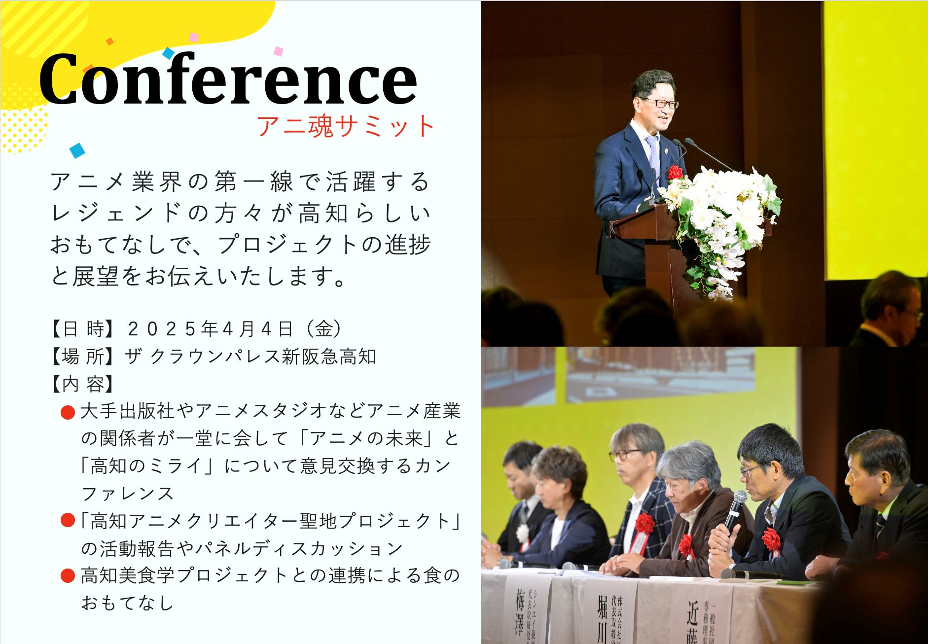 【内容】出版社やアニメスタジオなどのアニメ産業と地域の関係者が一堂に会し、「アニメの未来」と「高知のミライ」について意見交換するカンファレンスです。