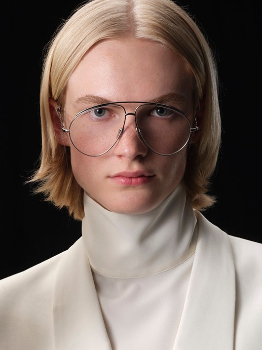 メンズのビューティールックでも、健康的なツヤ肌に仕上げました。モデルの肌は、「グッチ ブリューム ドゥ ボーテ」のビューティーミストと「グッチ バーム ヌリサン ユニヴェルセル」のマルチユースバームで整えられ、リップにはグッチ バーム ア レーヴル 1ジョスリン クレア」を使用し、潤いをプラスしました。