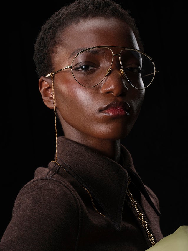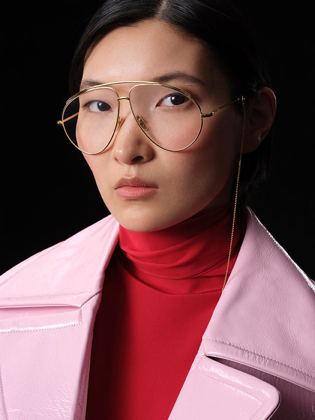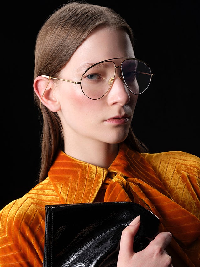 フレッシュで輝く肌は、グッチの最新イルミネーティングパウダー「グッチ グロウ ハイライター」で引き立てられました。このマルチハイライターにより、顔立ちをやわらかく際立たせ、まぶたや鼻先、キューピッドボウ、あご先に繊細な輝きをプラス。また、頬には「グッチ ブラッシュ ドゥ ボーテ」でふんわりとした血色感を与えました。