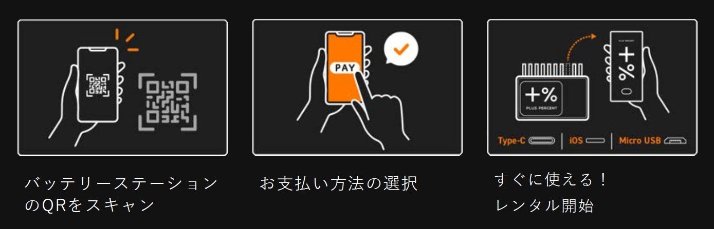 「+% PLUS PERCENT(プラスパーセント)」(略称:プラパ)は「プラッと探してパッと充電」がコンセプトの、ワンコインから使えるモバイルバッテリーのレンタルサービス