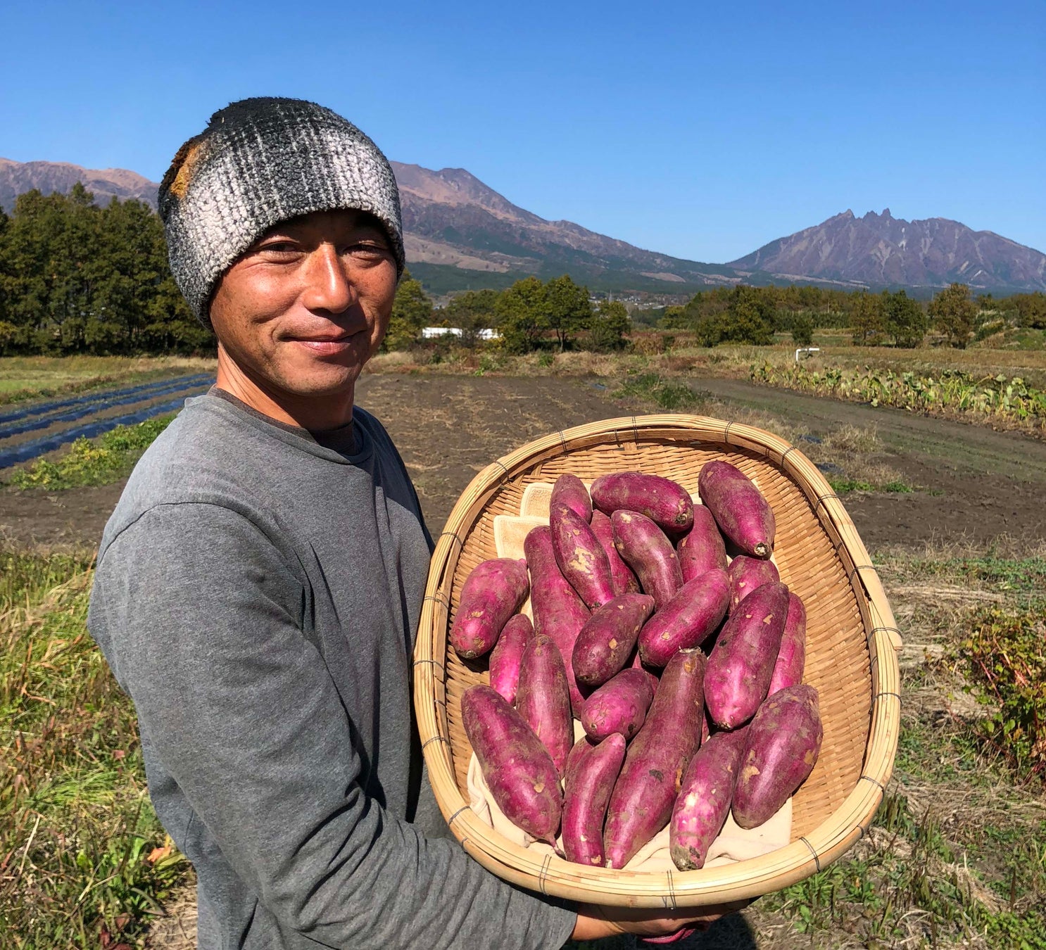 さつま芋の生産地は熊本県、阿蘇五岳の麓・南阿蘇村。