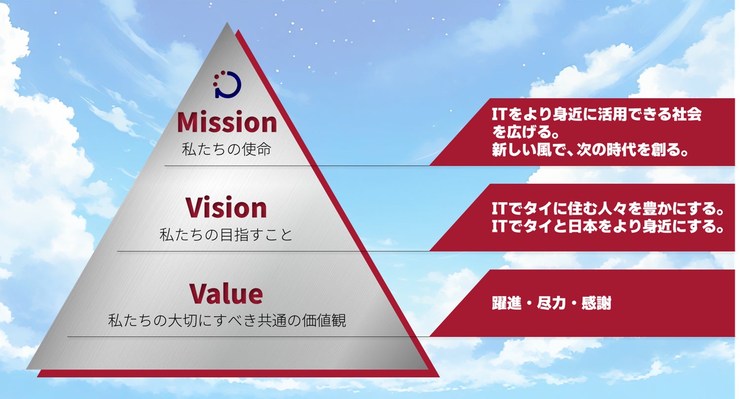 ITを使ってタイに住む人々を豊かにし、ITでタイと日本を結び、ITを身近なものにしていくことが、ITに強みを持つ私たちの目指すことです。