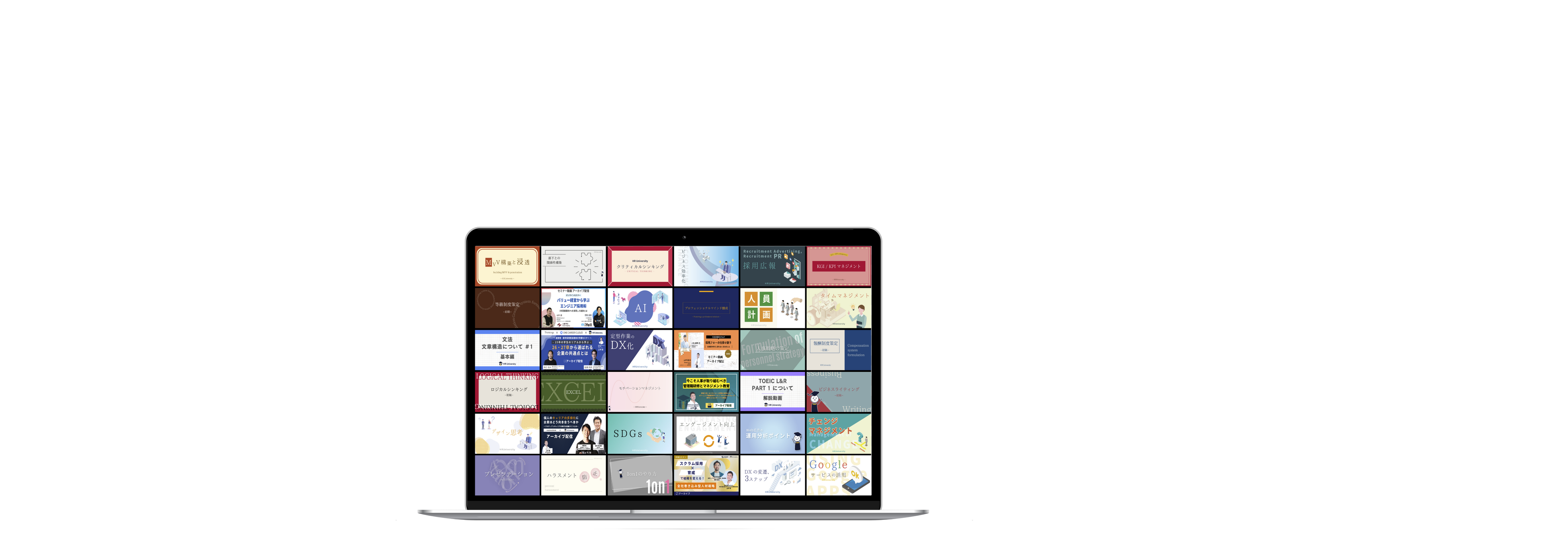 ● DX やAI など、ビジネス直結の最新動画1,000本以上が見放題。さらに、ニーズに合わせて専門性の高い「オプションコンテンツ」も追加でき、自社に最適な学習環境を構築できます。
