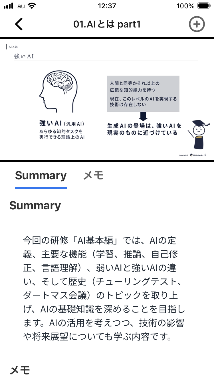 ● 音声だけでなく、映像の変化や声のトーンまで、AI が「まるで人間のように」動画を分析し、要約・タグ・シーン分割を自動生成。忙しい時は要約だけ読む、気になるタグの箇所だけピンポイントで学ぶなど効率よく学習することができます。 さらに分割されたシーンやタグを活用することで、一度学習した内容の振り返りが簡単にでき、知識の定着が可能となります。
