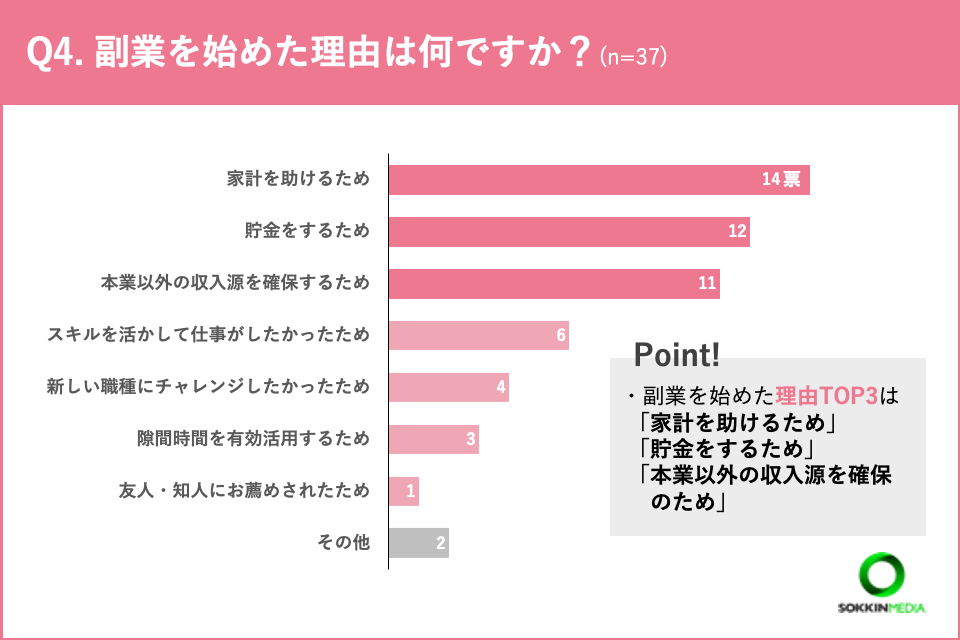 ・夜勤回数が減り、収入の足しにしたいと考えたため。