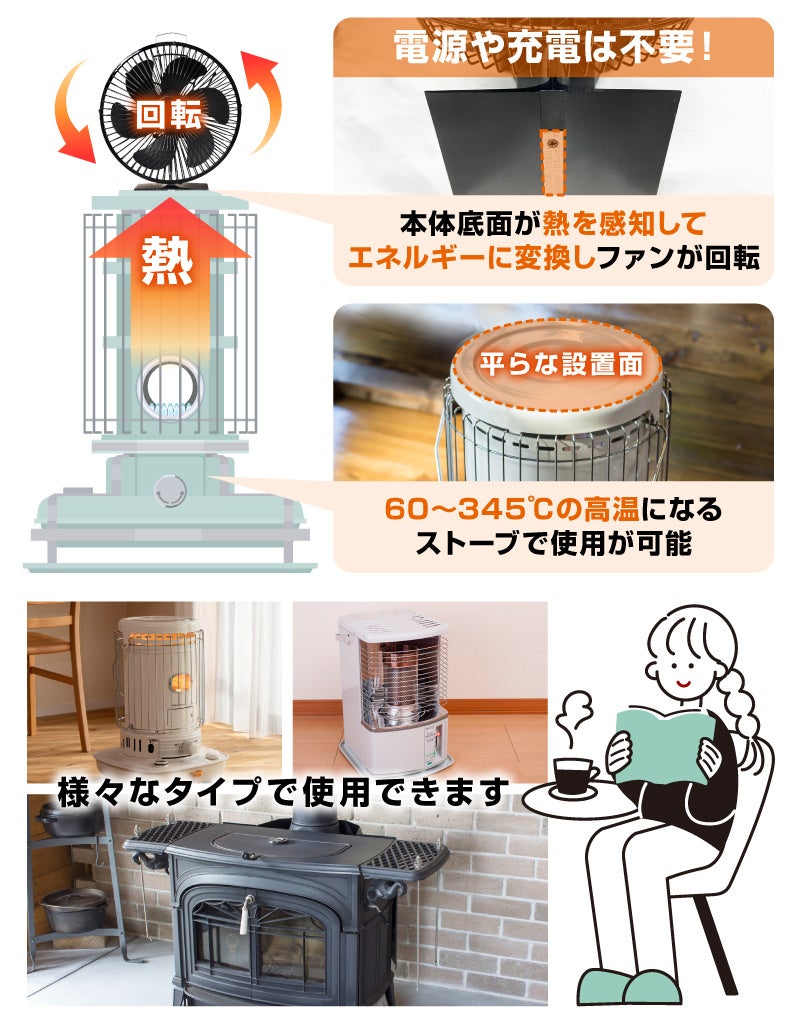 『電源不要で暖気を循環させる「ストーブファン」』を発売