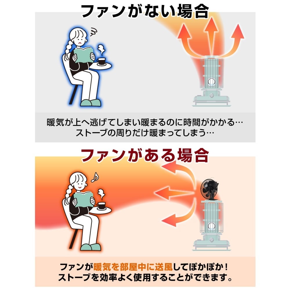 ■ストーブの熱をファンで循環するストーブファン