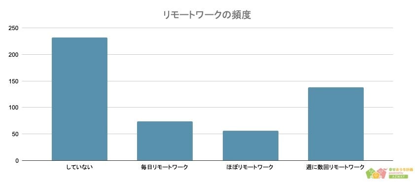 「はい」と答えた人を細かくみると、「毎日」が74人、「ほぼ毎日」が56人、「週に数回」が138人となっており、いまだに毎日リモートワークをしている人が全体の約15%いることがわかります。