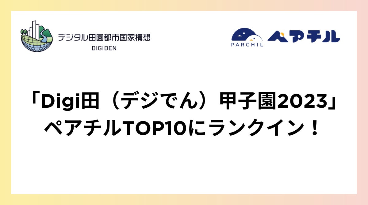内閣官房デジタル田園都市国家構想推進取組み「Digi田(デジでん)甲子園2023」ペアチルTOP10にランクイン(審査委員会審査結果)!