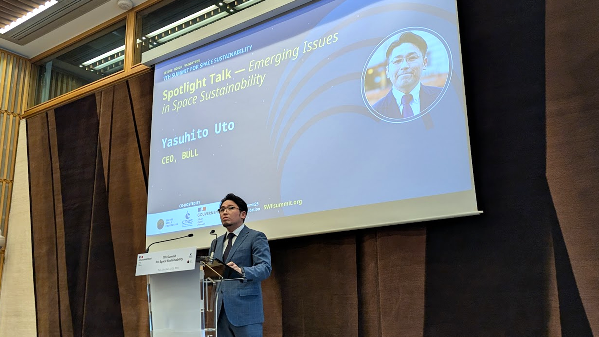 株式会社BULL(本社:栃木県宇都宮市、代表取締役:宇藤 恭士、以下「BULL」)は、2025年10月22日、23日にフランスのパリで開催された第7回Summit for Space Sustainabilityの意義に賛同し、シルバースポンサーとして支援いたしました。また併せて、開催2日目に実施されたセッション「Emerging Issues in Space Sustainability」に代表の宇藤が登壇し、宇宙の持続可能性の重要性を世界へアピールしました。