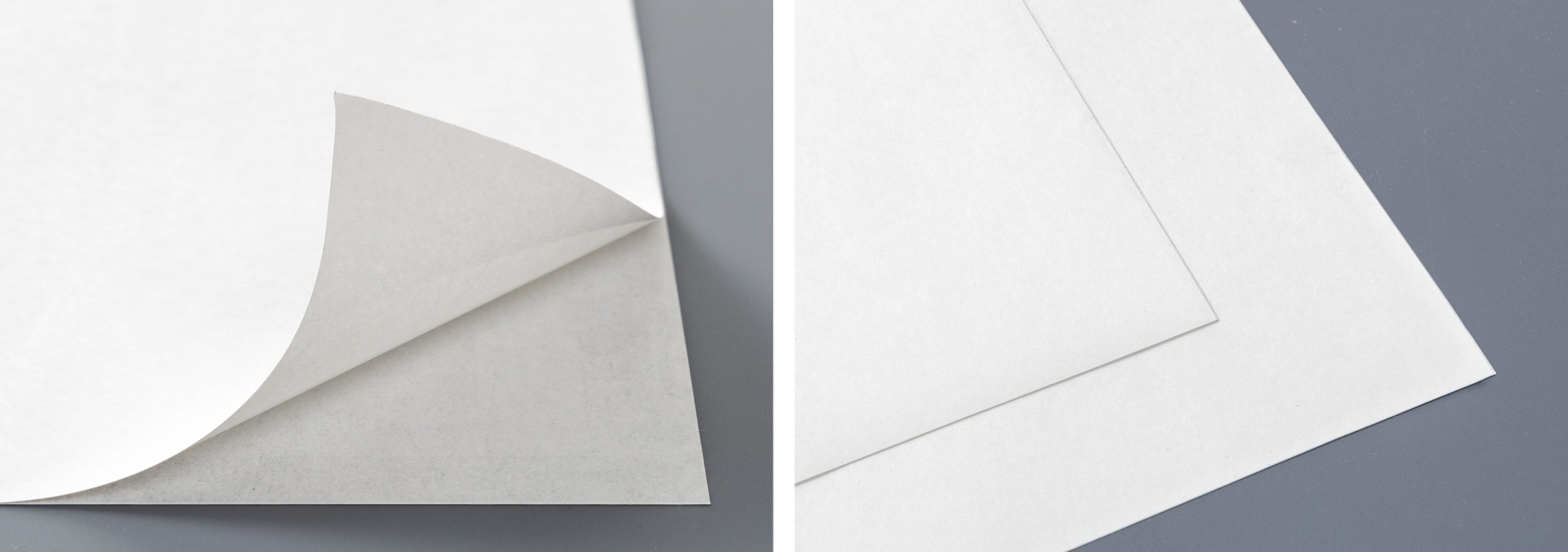 本製品はしっかり貼付けができる粘着性がありながらも、アルカリ溶液に反応する糊を使用しているラベルです。水で剥離するラベルは従来からありましたが、糊の配合を調整することでアルカリ溶液に約10分浸漬することで糊の親水性が高まり、瓶などの容器と糊の接着面に水が入りやすくなり、容器からきれいに剥がすことができます。また、ラベル表面に印刷が施されていると、アルカリ溶液の浸透が妨げられ剥がれ難くなる場合がありますが、本製品はラベル全面に印刷されていても安定してきれいに剥がれます。