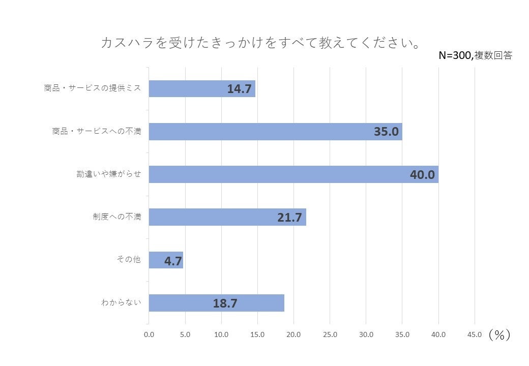 カスハラを受けたきっかけは「勘違いや嫌がらせ」が40%