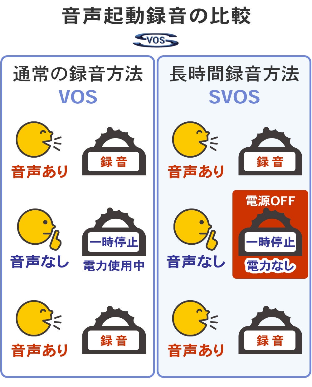 音声起動録音VOS機能はボイスレコーダーでは一般的になっている機能です。