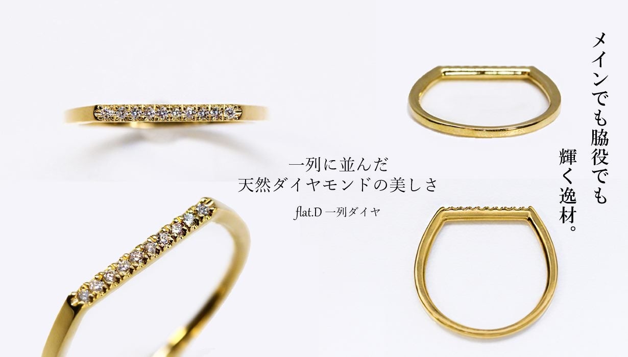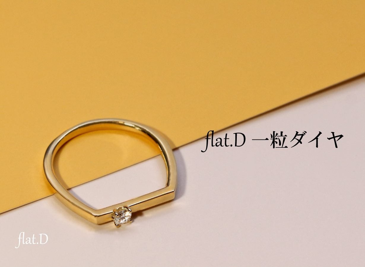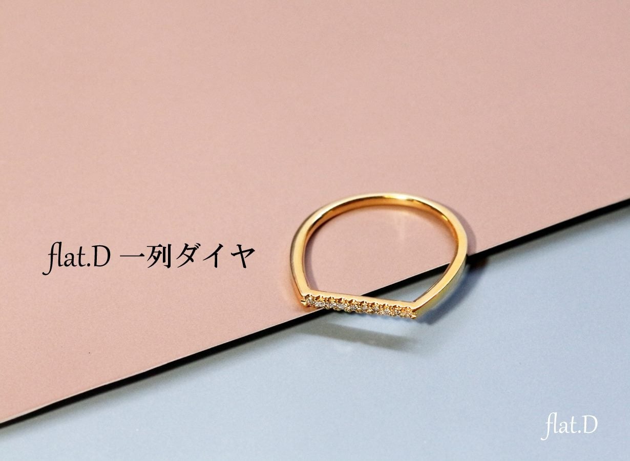 Flat.Dは、指に着けた時の見え方にこだわって作成しました。上部がフラットになる事で、見える面積や角度が違って、華奢なリングなのに存在感がある、そんなデザインに仕上がりました。