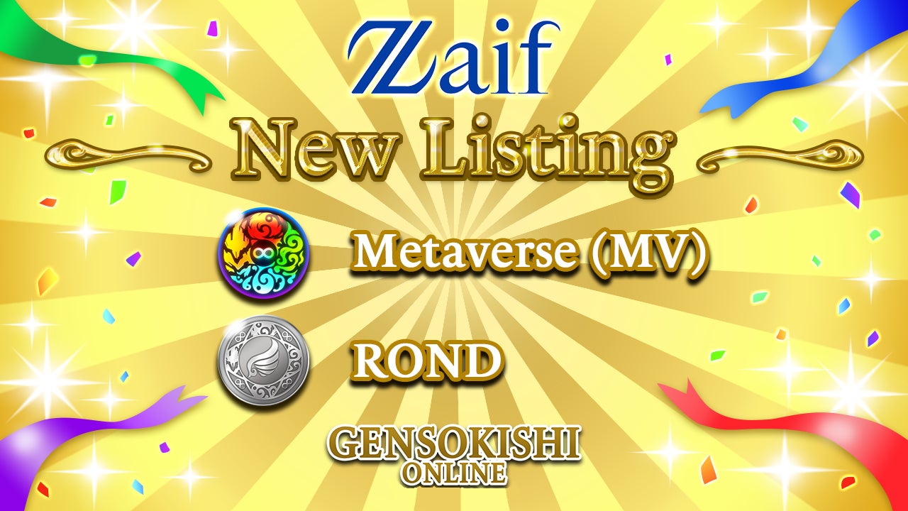 元素騎士は、暗号資産交換所Zaifにて、本日「MV」「ROND」が同時上場したことをお知らせいたします。