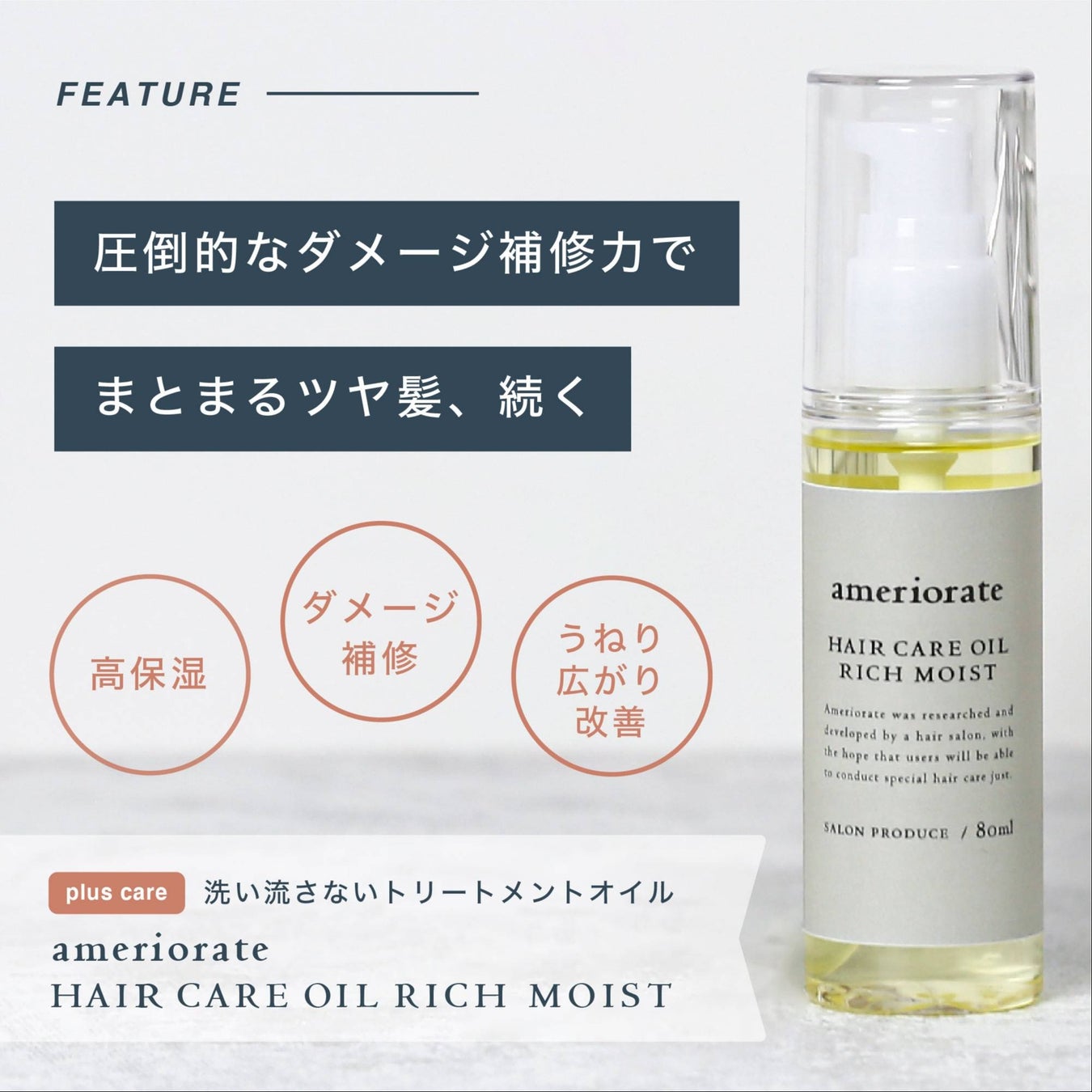 ■ 洗い流さないトリートメントオイル しっとりタイプ「アメリオレイト ヘアケアリッチオイル」