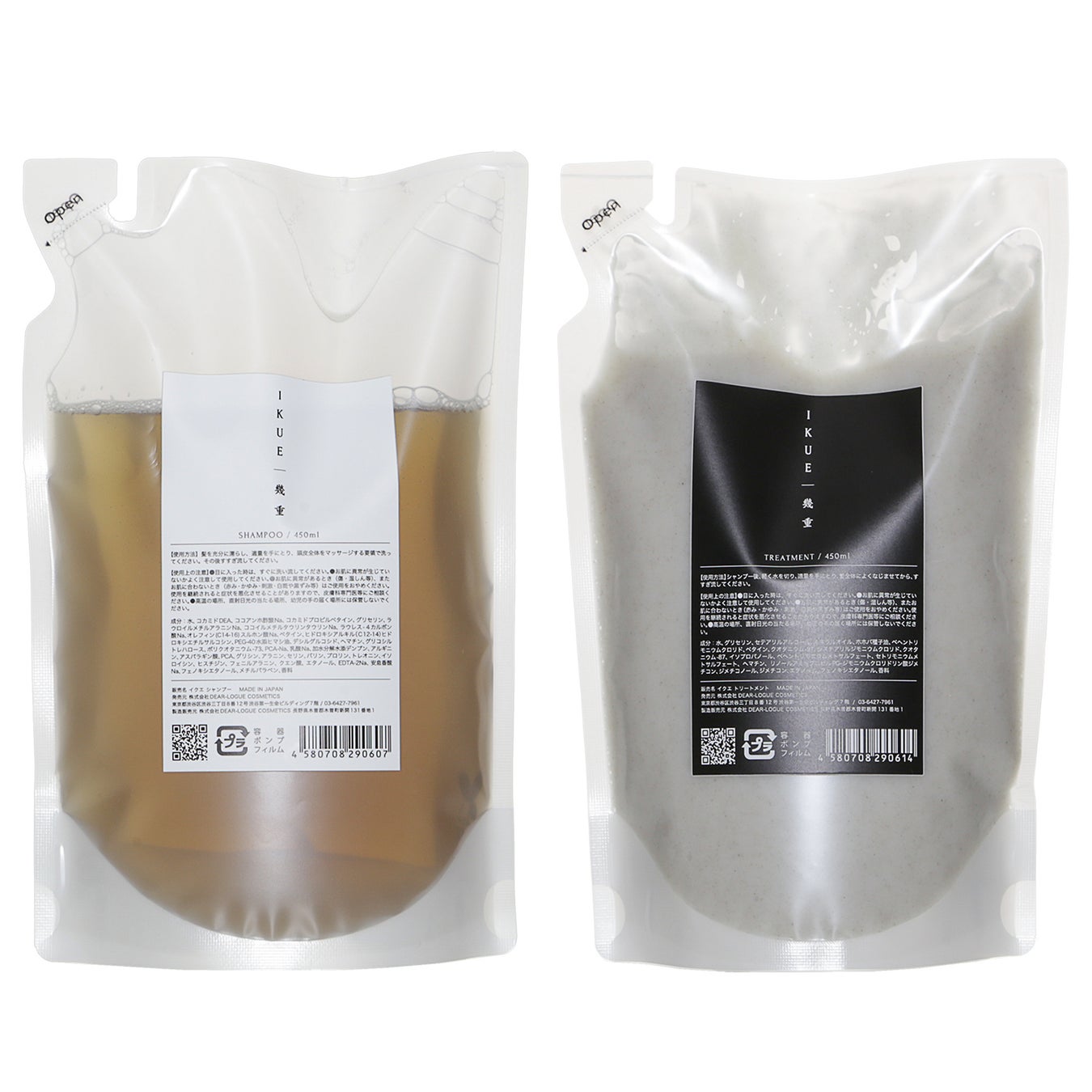 ■<詰め替え用>幾重シャンプー450ml(左)/幾重トリートメント450ml(右)