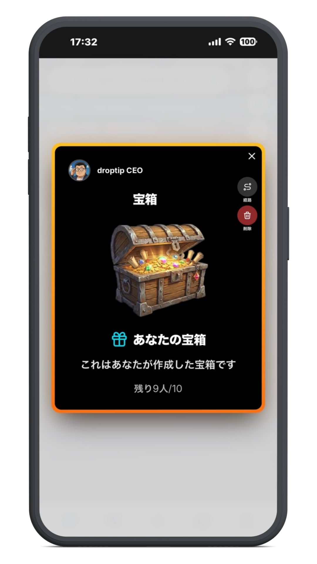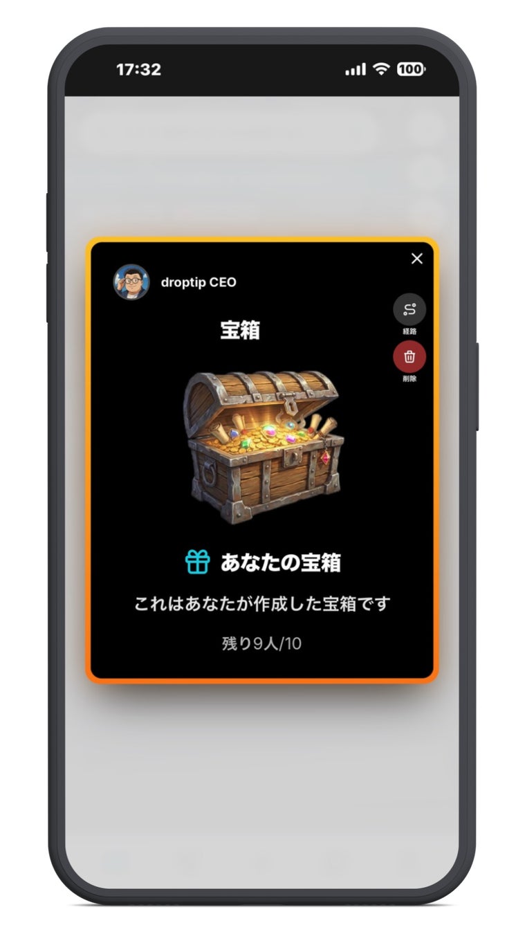 マップ上に宝箱を設置可能。一定距離以内に近づくことで開封できるため、歩くこと自体が楽しくなる仕掛けとして機能します。