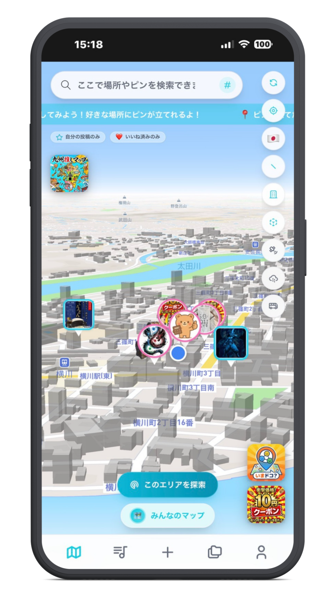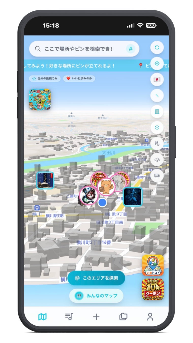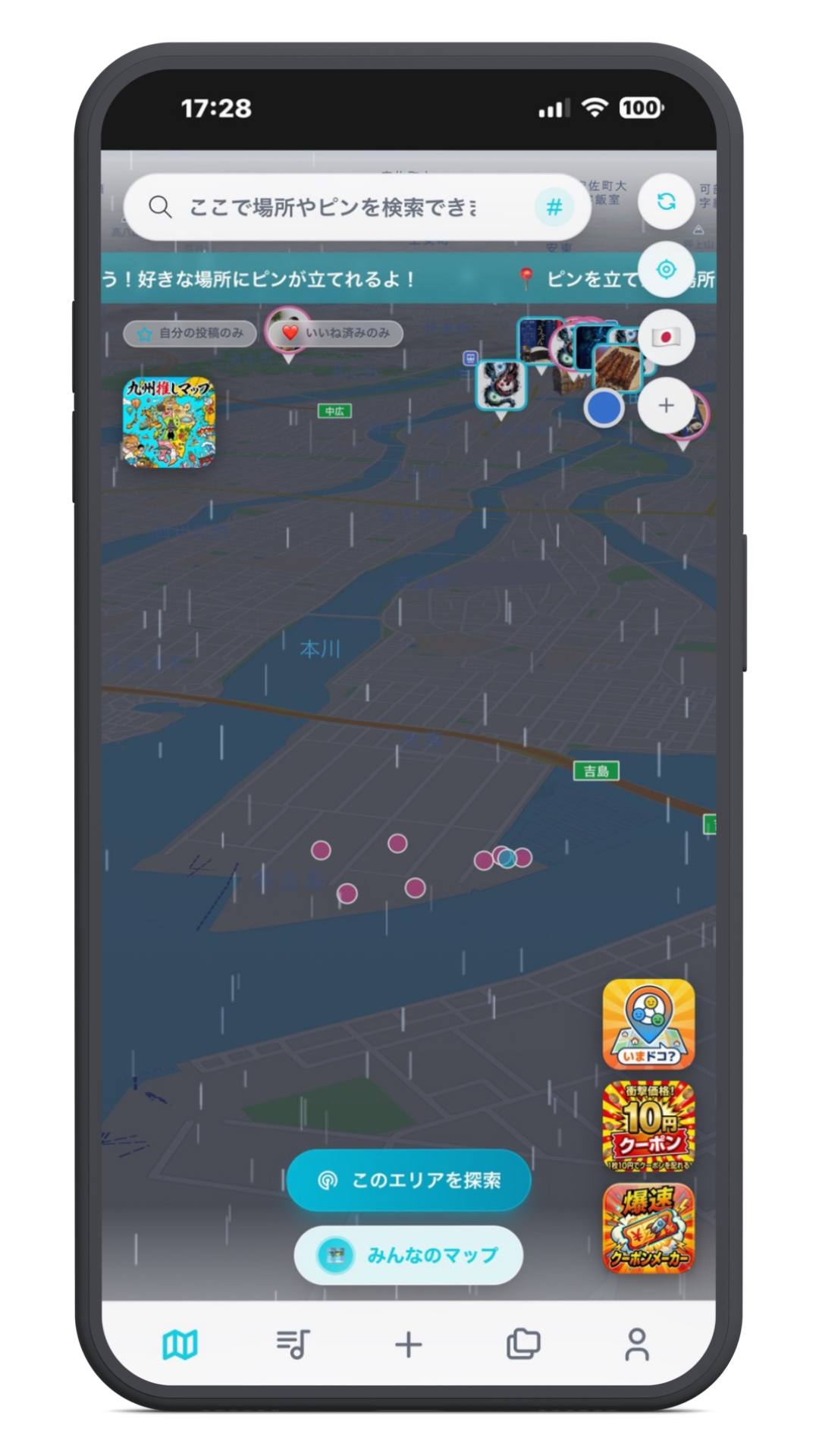 ユーザー登録(完全無料)をするとマップ上にピンや宝箱を投稿したり、クーポンを拾ったり楽しみが増えますので、是非ユーザー登録をしてお楽しみください。