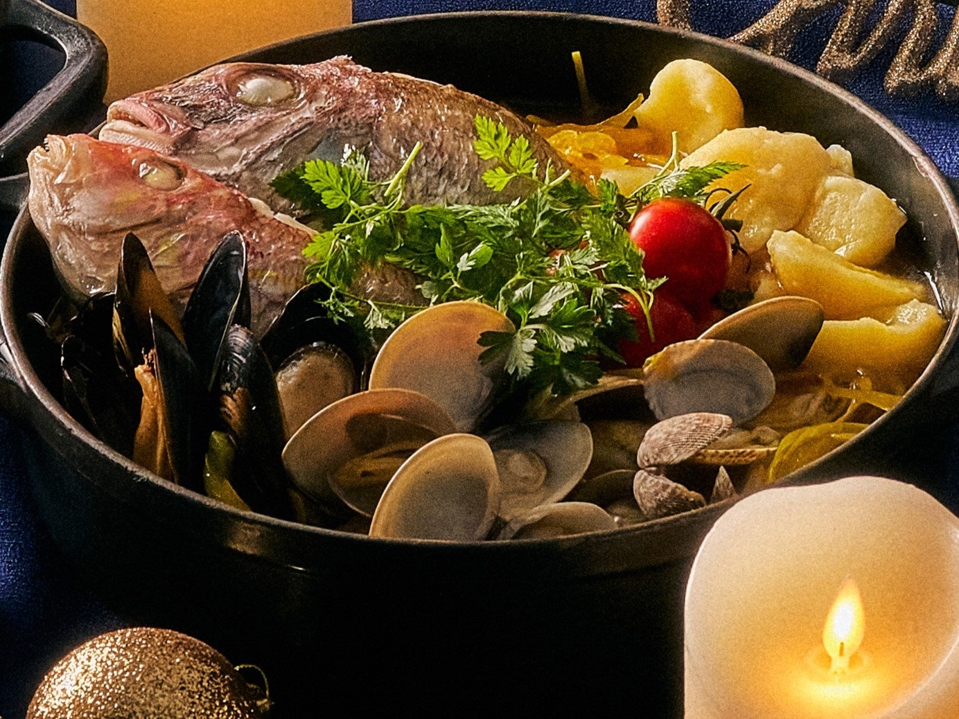 鯛やイサキなど旬の魚を使用し、ムール貝やあさり、ハマグリといった貝類が旨味をさらに引き出した逸品です。