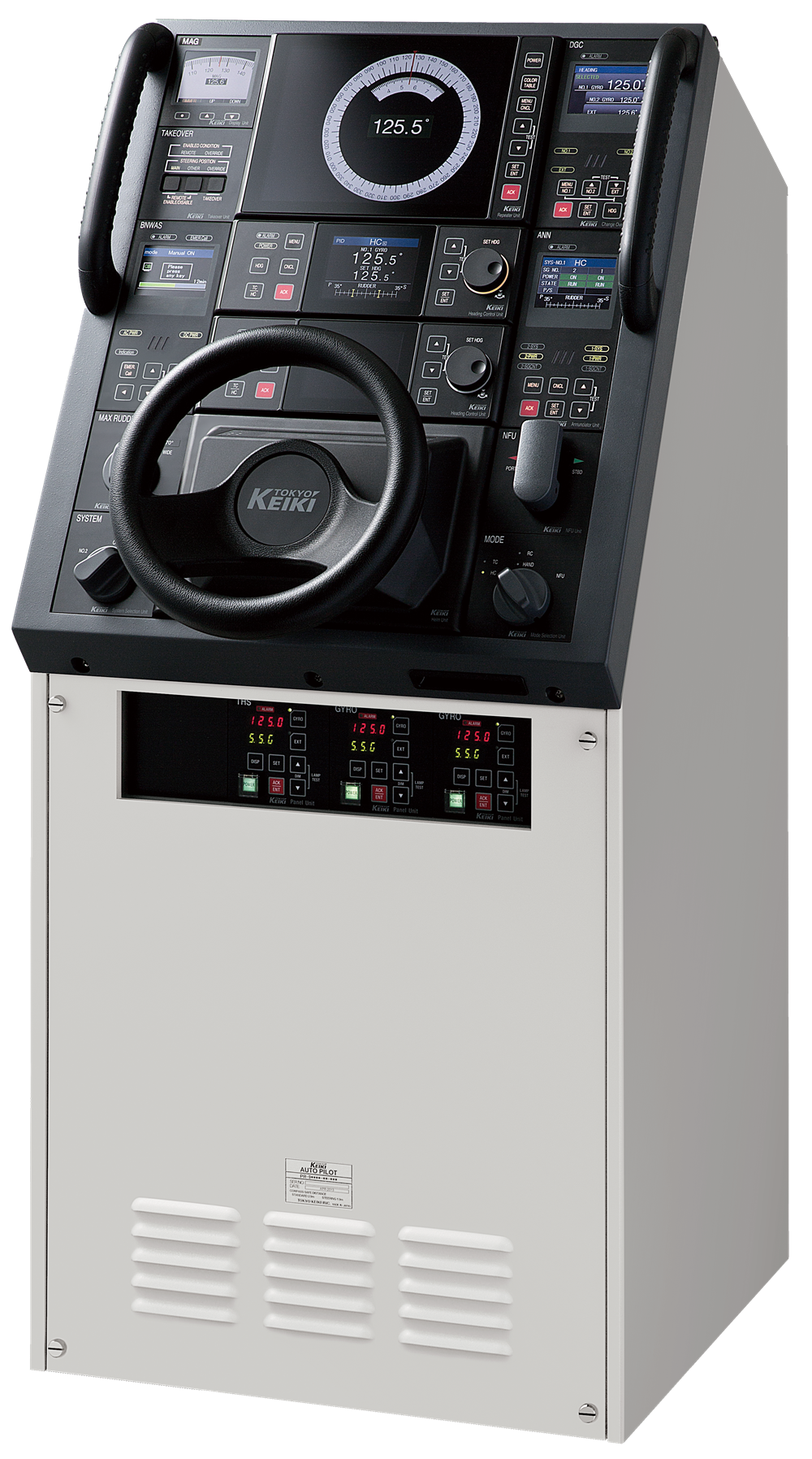大和ミュージアムは、戦艦「大和」をはじめとする旧日本海軍の艦船から最新の大型商船まで、さまざまな船を造り続けている「呉の歴史」と、造船・製鋼を始めとした各種の「科学技術」を紹介する博物館です。以前より東京計器の機器を展示いただいておりましたが、2026年4月23日のリニューアルオープンに合わせ、最新のオートパイロット「PR-9000」と電子海図情報表示装置(ECDIS)「EC-9000」に加え、東京計器の歴史的製資料複数を寄贈しました。